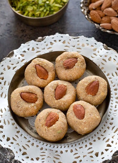 Atta Pinni is rich in fats from ghee and fats from nuts, with fiber from whole wheat flour and a goodness from a mix of dry fruits. The texture and ingredients provide a wholesome, energy-dense snack that carries traditional flavors and satisfies a craving for something comforting in cold weather.